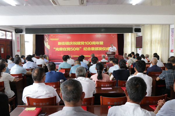 6月29日上午,新街鎮舉辦慶祝建黨100周年大會暨“光榮在黨50年”紀念章頒發儀式。會議由鎮長王瑤主持,黨政班子成員、各村(社區)黨(總)支部書記及組織委員、各鎮直單位、非公企業黨組織書記、受表彰對象、“光榮在黨50年”紀念章獲得者代表及新發展黨員等共計100余人參加了此次會議。