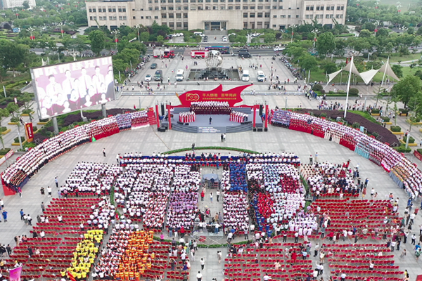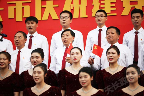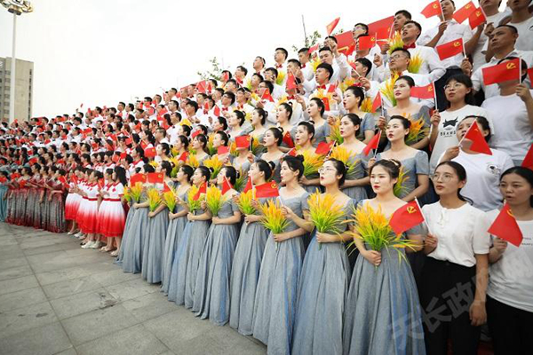 最美的歌兒獻給黨。6月29日,我市隆重舉辦“千人頌歌 百年同慶”——慶祝中國共產黨成立100周年群眾歌詠大賽。鄧繼敢、賀家平、吳振文、董學文、史法勇、張宏生等市幾個班子領導與兩千多名黨員群眾齊唱紅歌,重溫黨的百年光輝歷程,抒發對黨對祖國的熱愛之情。