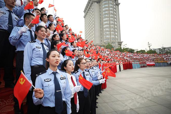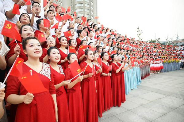 隨后,來自全市各行各業的2000多名黨員群眾,唱著誠摯的歌,跳著歡快的舞,把最美好的祝福獻給黨。《偉大的中國偉大的黨》《不忘初心》等歌曲唱出了中國共產黨人“不忘初心,牢記使命”的鏗鏘誓言?!渡降させㄩ_紅艷艷》《沂蒙山小調》等膾炙人口的革命歌曲,讓現場觀眾隨著歌聲一起走進紅色記憶?!稄团d的力量》《再一次出發》等禮贊祖國、謳歌時代的歌曲輪番唱響,傳遞著真摯的情感,表達著濃郁的愛黨、愛國情懷。