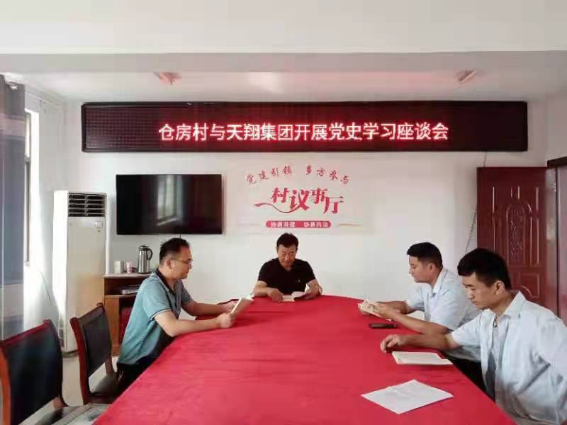 為進(jìn)一步加深村企聯(lián)建的多方聯(lián)動、全面共建,認(rèn)真開展黨史學(xué)習(xí)教育,以飽滿的激情迎接建黨100周年。6月25日上午,倉房村與天長市天翔集團(tuán)有限公司聯(lián)合黨支部召開學(xué)黨史座談會。