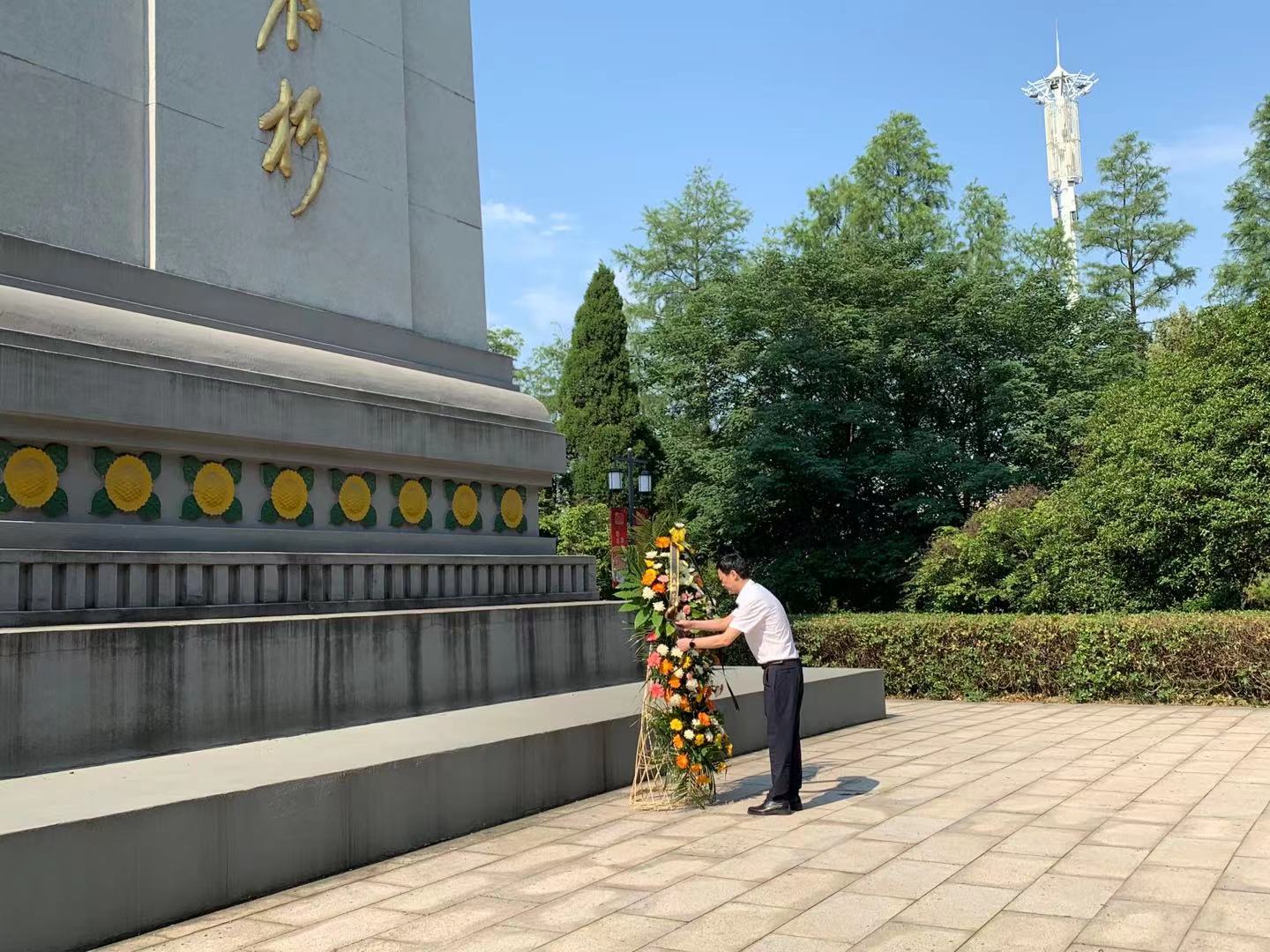 在烈士陵園講解員的引導下,機關支部黨員代表抬著花籃緩步走向烈士紀念碑,將花籃擺放在紀念碑前,鎮黨委書記袁平邁步上前,仔細整理花籃緞帶。面對革命烈士紀念碑,全體人員默哀、鞠躬,深切緬懷革命烈士英勇獻身的豐功偉績。