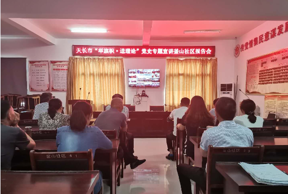 6月8日,天長市“舉旗幟 送理論”宣講團隊來到汊澗鎮進行黨史專題宣講,釜山社區組織黨員群眾在釜山分會場參加。