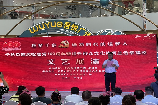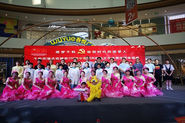7月20日下午,千秋街道在吾悅廣場舉辦以“追夢千秋,做新時代的追夢人”為主題的慶祝建黨100周年暨提升群眾文化體育生活幸福感文藝展演,街道領導班子成員、機關全體黨員、居村黨組織書記、黨員代表等參加了本次活動。