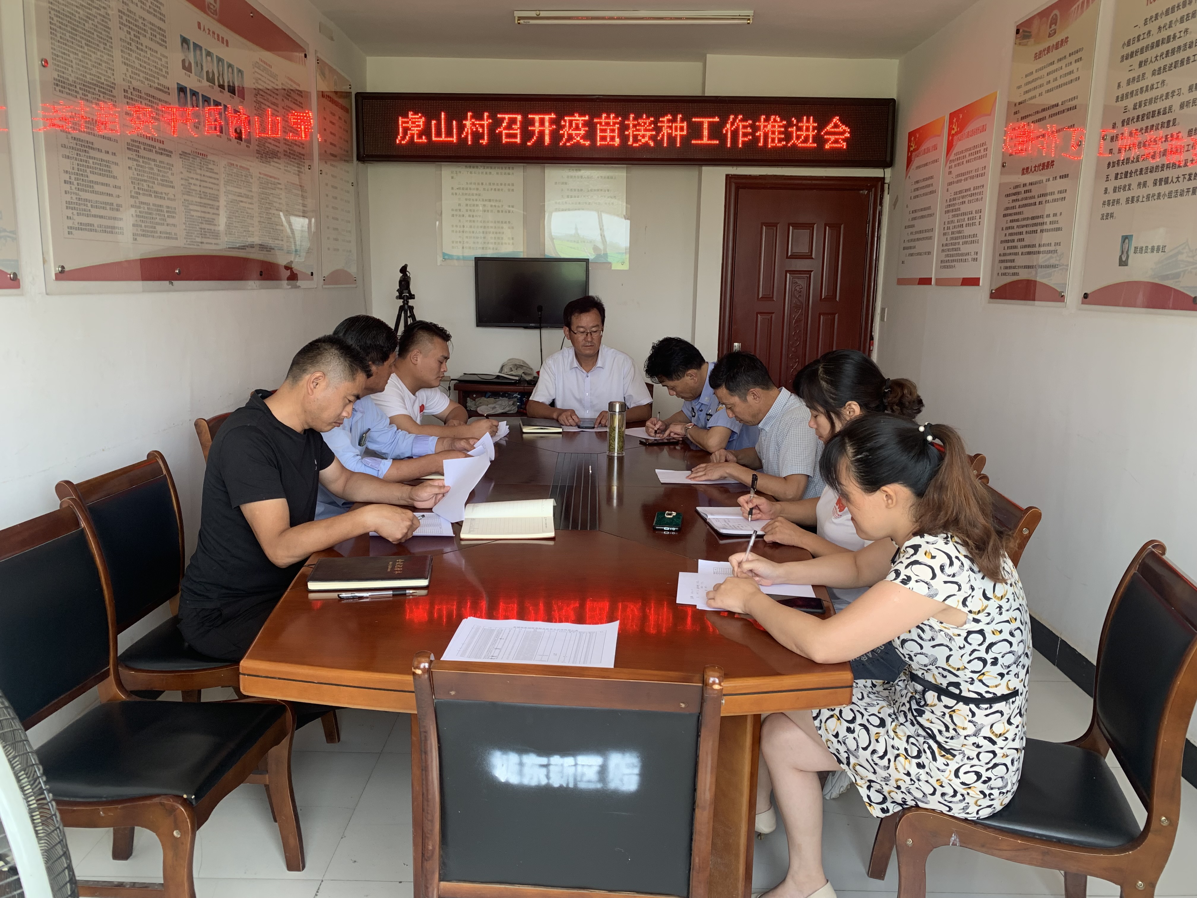 2021年7月22日上午,虎山村召開疫苗接種工作推進會。包村鎮干張國忠、張仁斌和虎山村村兩委班子成員參加此次會議。