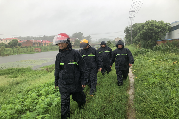 “今天這種天氣,我們坐在辦公室也坐不住,必須要下來看看才能放心”。7月27日上午,冒著大雨、頂著大風,在天長市楊村鎮金埠村,黨總支書記郁宗柱正組織村兩委班子成員對轄區內涵閘、堤防、泵站進行巡邏檢查。