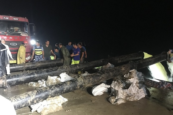 圖說:天長市水利局落實防汛技術服務保障,搶架臨時排澇防汛設備,處置堤防塌方險情,防止險情繼續擴大,確保人民生命財產安全和水利工程安全。