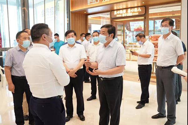 在吾悅廣場(chǎng),許繼偉從口罩佩戴、入門掃碼、體溫檢測(cè)等各個(gè)環(huán)節(jié)檢查疫情防控措施落實(shí)情況。許繼偉叮囑商場(chǎng)負(fù)責(zé)人要切實(shí)負(fù)起主體責(zé)任,嚴(yán)格按照市委、市政府相關(guān)要求,從嚴(yán)、從細(xì)、從實(shí)抓好疫情防控工作,做到嚴(yán)防死守,確保每個(gè)環(huán)節(jié)都不出現(xiàn)漏洞和疏忽,全力做好新冠肺炎疫情防控工作。