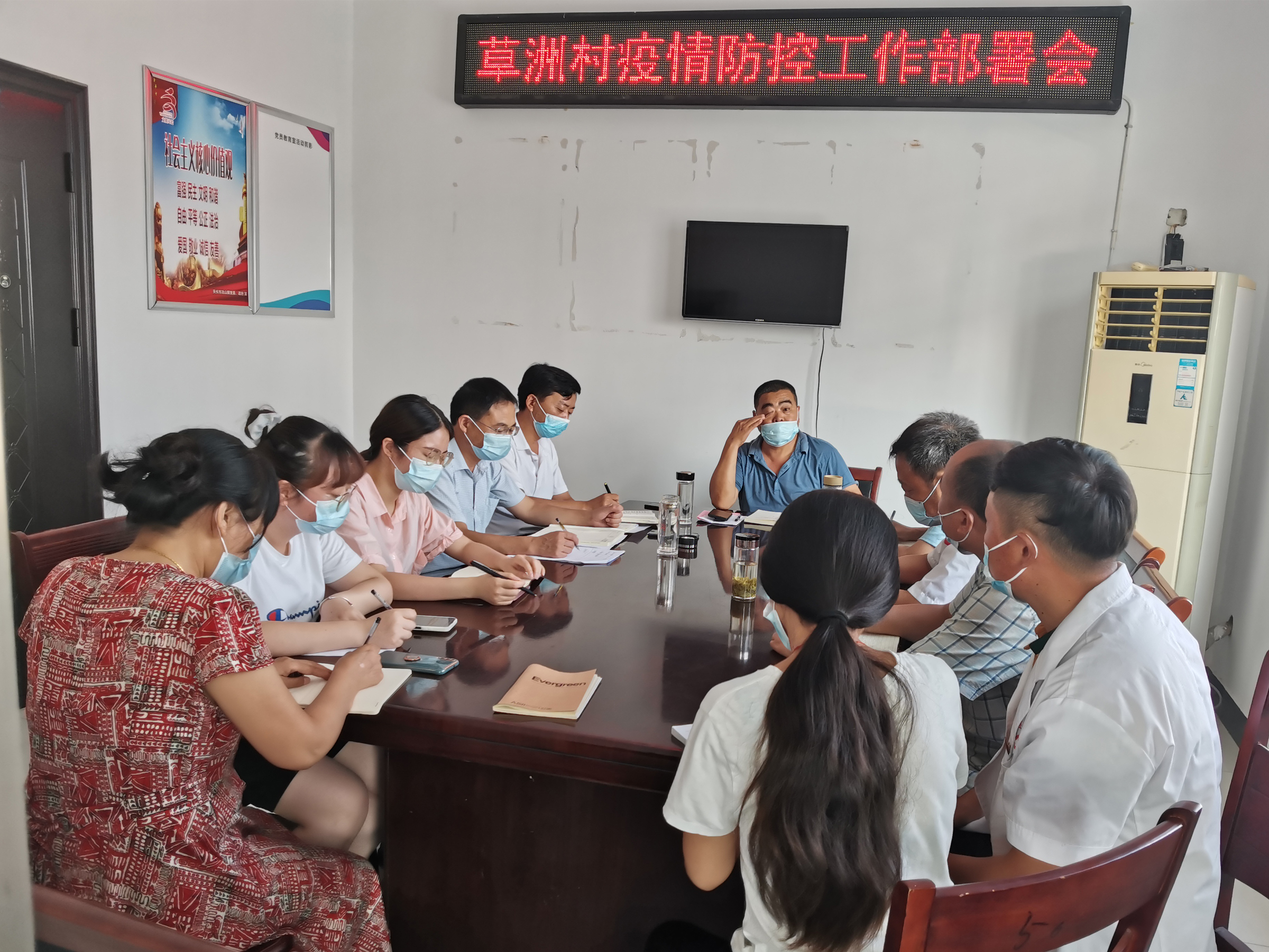 受南京疫情影響,7月31日草洲村再次召開疫情防控工作部署會,冶山鎮包保領導、草洲村兩委、草洲村衛生室參加會議。