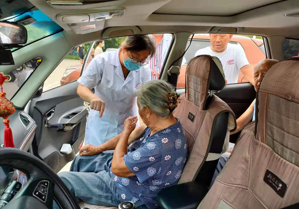 2021年8月22日上午,銅南村安排車輛上門接送人員到接種點接種疫苗,醫生并親自為不能下車村民接種疫苗。