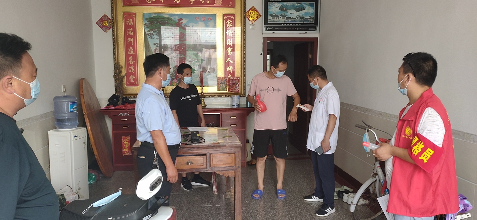 隱庵村充分發(fā)揮網(wǎng)格化優(yōu)勢,將涉疫風(fēng)險(xiǎn)地區(qū)返鄉(xiāng)人員摸排工作做實(shí)做細(xì)。對于居家隔離管控人員,嚴(yán)格落實(shí)疫情防控管控要求,鎮(zhèn)包保領(lǐng)導(dǎo)與村干、村醫(yī)上門測量體溫、送防疫消毒物資、送居家隔離告知書,落實(shí)“一對一”包保責(zé)任。