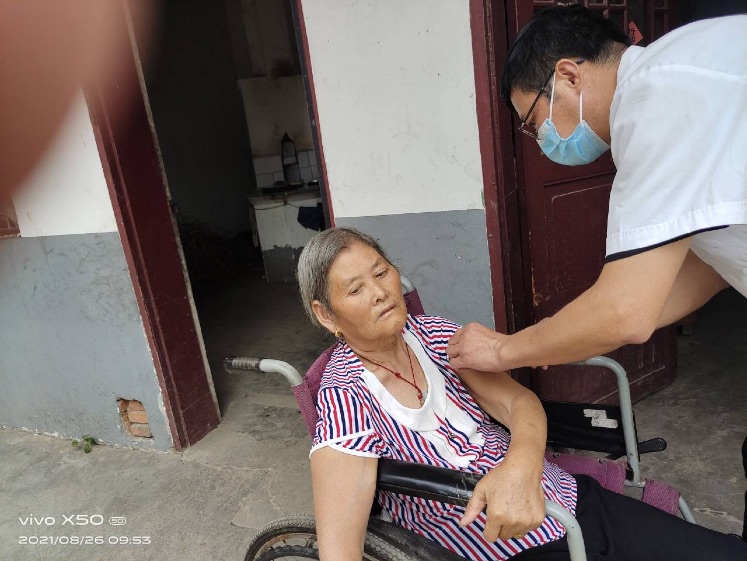 為更好方便轄區內的殘疾、行動不便的居民接種新冠疫苗、提高疫苗接種率,做到全民接種,郜山村委會精準對接居民需要,在鎮疫情防控指揮組的幫助下,申請上門為殘疾人、行動不便的居民進行疫苗接種。26日醫護人員帶著疫苗儲存箱在村干的陪同下到事先申請需要上門接種的群眾家進行疫苗接種。