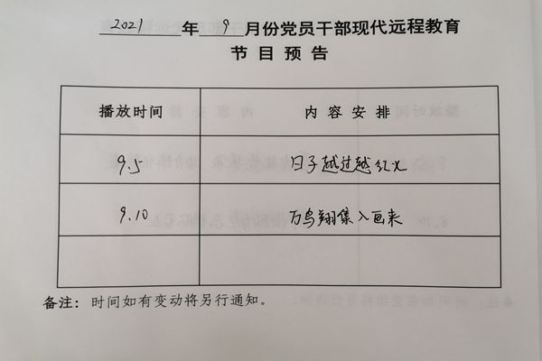 上一篇:吳莊村2021年8月份遠(yuǎn)程教育播放計(jì)劃[ 08-01 ] 下一篇:吳莊村2021年10月份遠(yuǎn)程教育播放計(jì)劃[ 10-01 ]