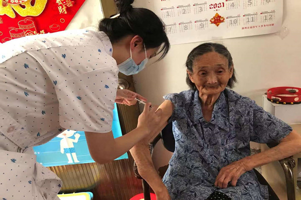 “個個打疫苗,就不會有傳染了,我也不能落后啊!”8月26日,家住天長市廣陵街道永福社區的93歲的老復員軍潘玉仙在家人和社區干部的陪護下,順利完成了第一針劑新冠疫苗接種后說道。