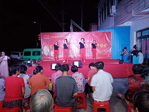“齊唱紅歌,喜迎國慶”巡演活動在開場舞《吉祥頌》中拉開了文藝演出的序幕,吉祥、活躍的場面沖擊著村民群眾的眼球。緊接著,金龍揚劇團帶來的新編揚劇《水鄉三月風光好》唱段則是備受中老年觀眾的喜歡;由市新時代文明實踐站工作人員宣講《使命呼喚擔當 責任引領未來》慶祝中國共產黨成立一百周年,宣傳全面建成小康社會偉大勝利,學習黨史國史教育,傳播了新思想,引領新風尚,10個接地氣而又富有創新色彩的節目一一展演,贏得了廣大觀眾的陣陣掌聲。