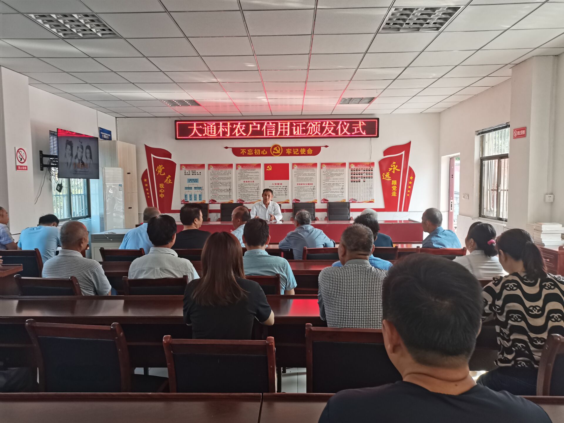 大通村黨建引領信用村建設已經進入授信階段,9月17日,大通村舉辦了黨建引領信用村信用證頒發儀式,邀請了部分A級以上的45戶農戶代表來參加此次頒發儀式。