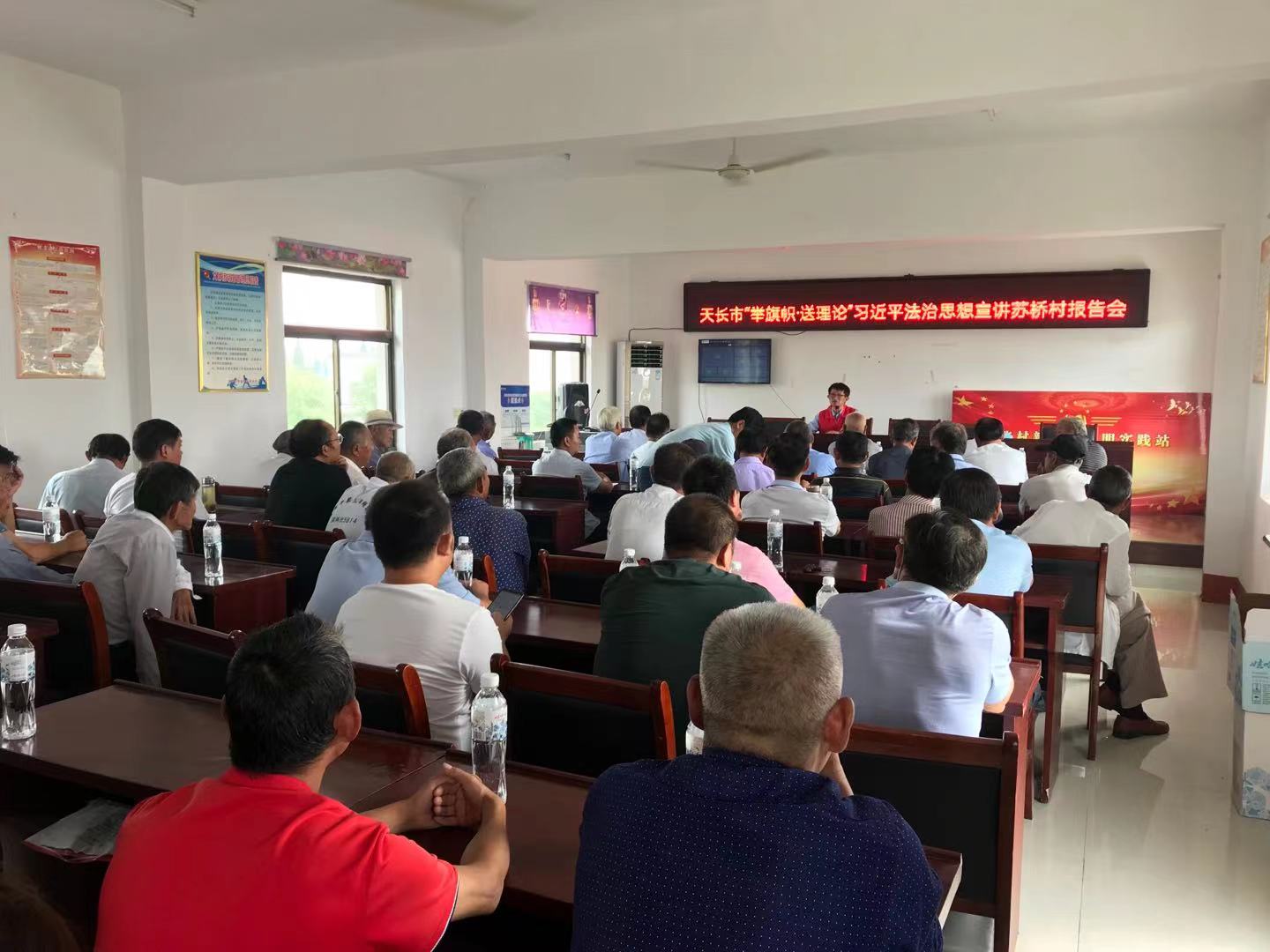 2021年9月9日由鎮宣傳部牽頭,蘇橋村聯合建華村在建華村黨員活動室開展一次天長市“舉旗幟·送理論”習近平法治思想宣講報告會。報告會共有近200余名黨員同志參加,此項宣講活動重在進一步宣傳貫徹習近平新時代中國特色社會主義思想和黨的十九大精神,從而進一步激發廣大黨員干部的家國情懷,傳承和弘揚愛國奮斗精神。