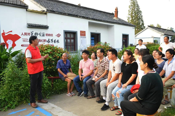 天長徽商銀行在石梁鎮石街社區指導村民申請首筆黨建引領信用村線上貸款