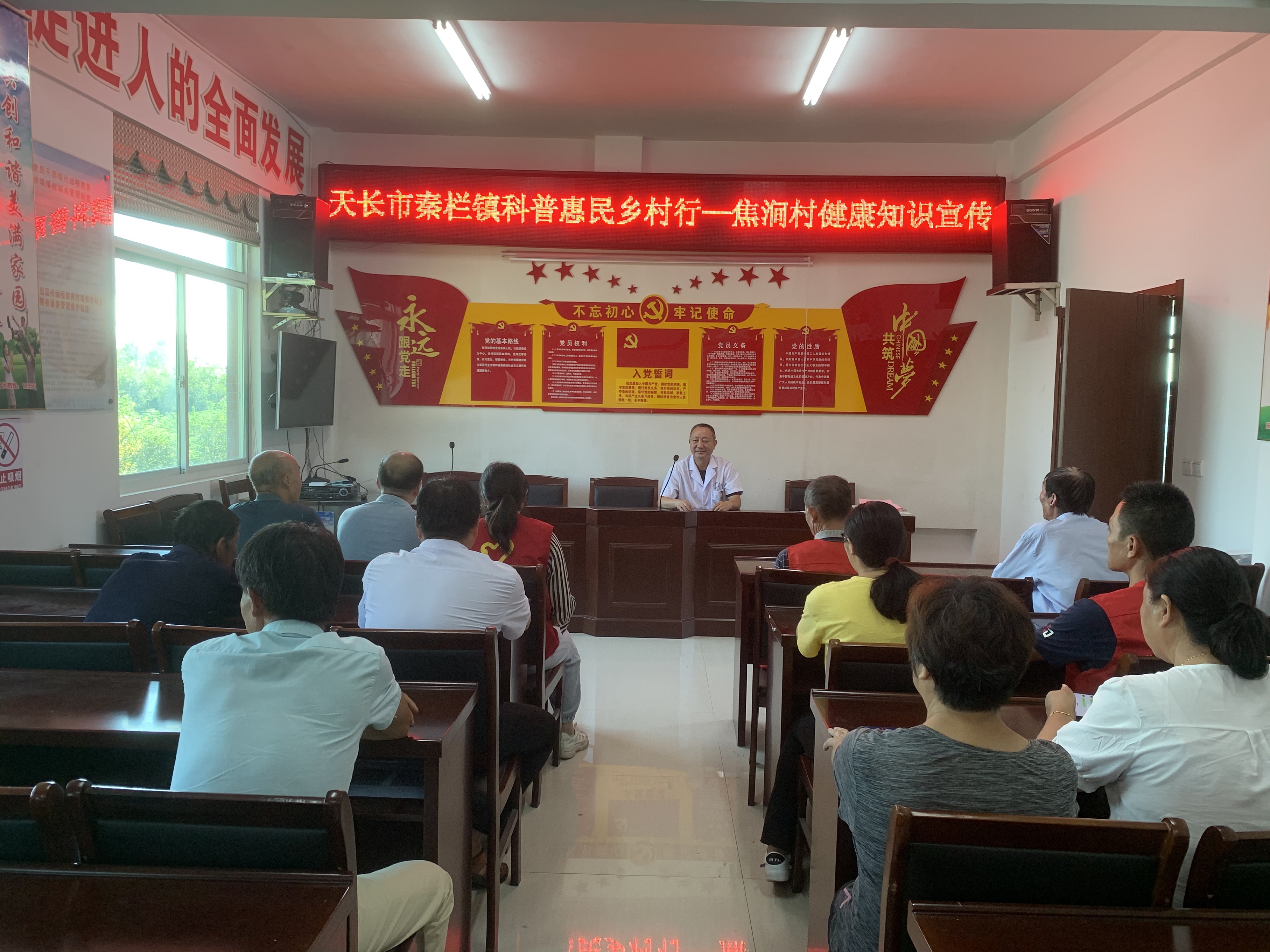 活動邀請村醫趙寶鈺為群眾進行健康衛生、科學防疫等知識的普及。趙寶鈺大夫從群眾喜聞樂見的身邊故事講起,語言通俗易懂,授課方式生動有趣。通過講授、演示、有獎問答等方式和群眾形成有效互動,群眾聽起來津津有味。
