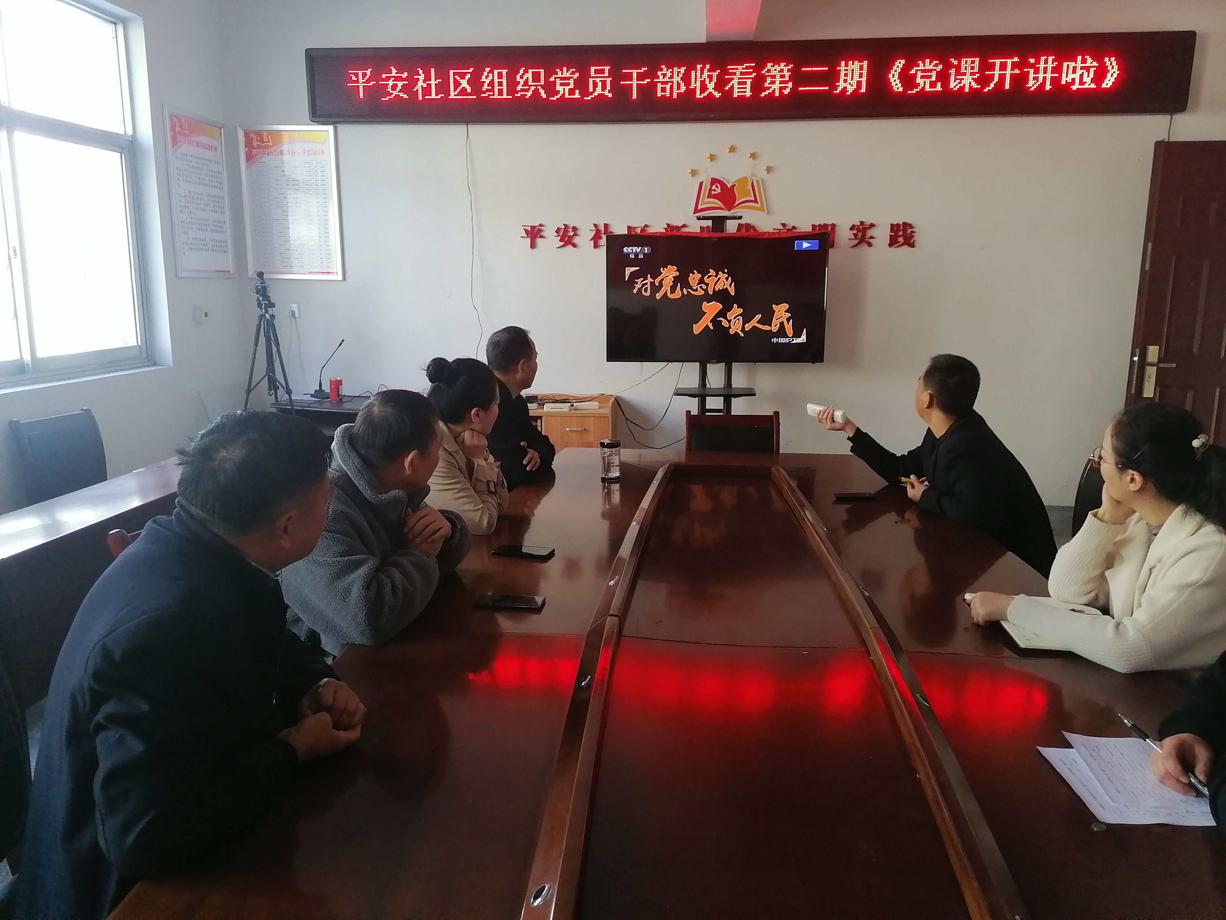 2021年10月24日晚上8時,平安社區組織黨員16人在社區二樓會議室集中收看和在家收看相結合方式,收看中央電視臺綜合頻道CCTV-1播出《黨課開講啦》第二期。共參加觀看的黨員89人。