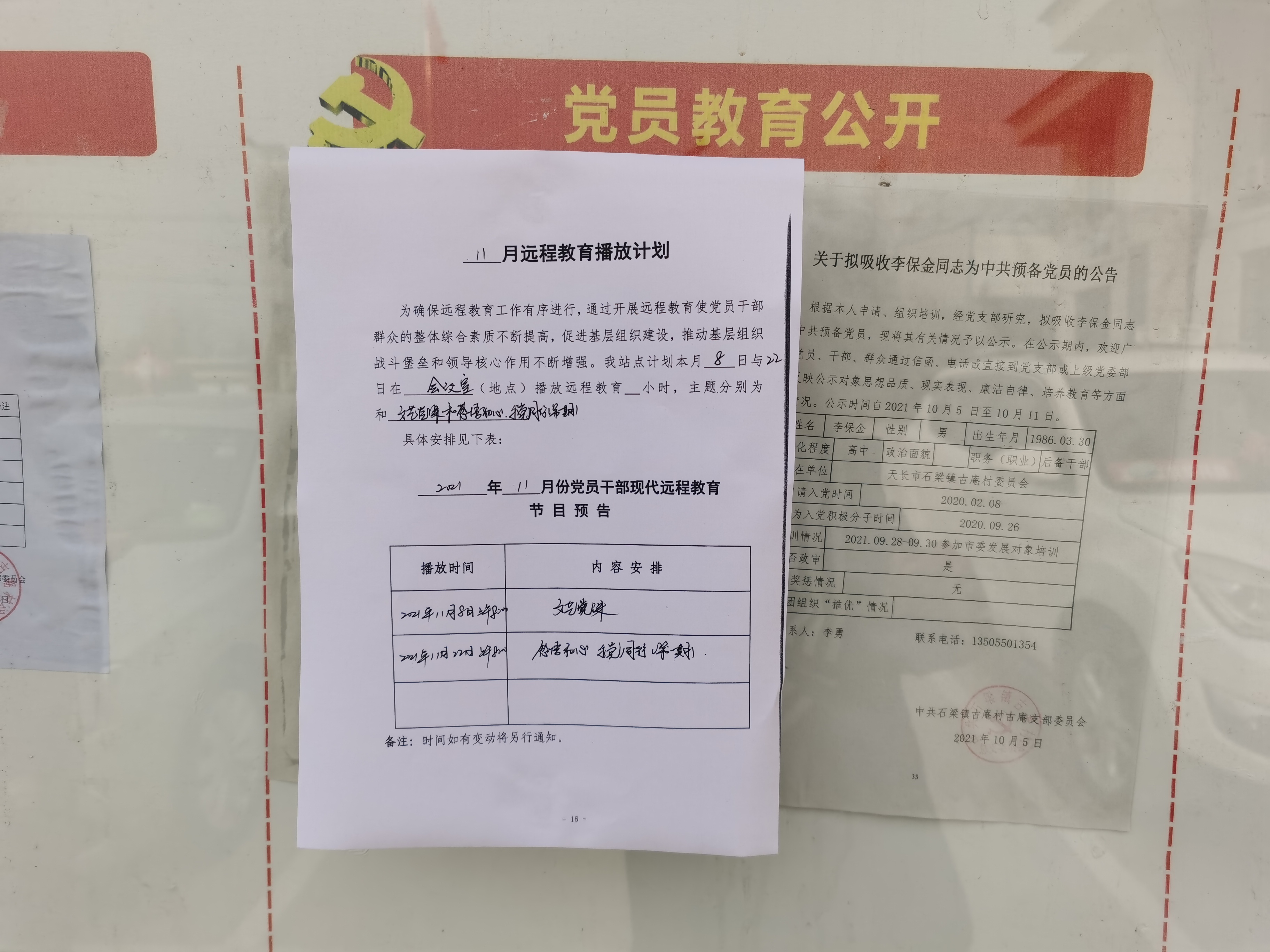 2021年11月份遠(yuǎn)程教育播放計(jì)劃:定于2021年11月8日和11月22日在村黨員活動(dòng)室播放遠(yuǎn)程教育,內(nèi)容分別為《文藝黨課》和《感悟初心 與黨同行(第一期)》,請(qǐng)大家屆時(shí)前來(lái)觀看。