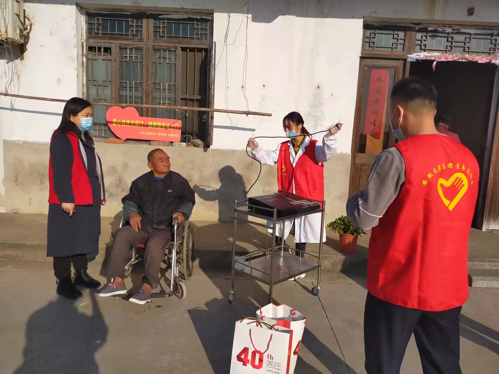 2021年11月14日上午天長市退役軍人事務局與市天康醫院聯合開展“愛心送進光榮門-服務送上門”健康體檢活動走進萬壽鎮張安村。
