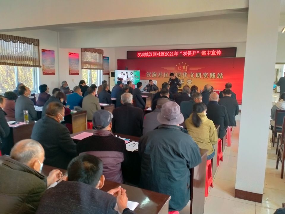 2021年11月05日上午,汊澗社區組織全體基層干部和村民代表在二樓會議室學習宣傳雙提升,會議由汊澗派出所所長虞志祥主持,虞志祥指出:為進一步提升人民群眾安全感滿意度,以及提高廣大人民群眾對掃黑除惡專項斗爭的知曉率、支持率和參與率,采取形式多樣的宣傳方式開展宣傳活動。為使活動取得實效,宣傳活動采取發動全體代表積極參與“電話測評+APP問卷調查”、發放傳單、播放宣傳片等方式進行,并與當前疫情防控工作相結合,形成群防群治宣傳氛圍。正面引導廣大群眾認真接聽安全感滿意度測評電話,對政法工作給予客觀的評價,并為掃黑除惡專項斗爭做宣傳,發動群眾參與社區的建設。通過此次宣傳活動,進一步促進了社區群眾安全感和滿意度“雙提升”,營造良好的法治宣傳輿論氛圍,使干部職工及群眾牢固樹立平安建設人人有責的理念,讓平安建設更加深入人心,增強群眾對掃黑除惡專項斗爭工作的認識。