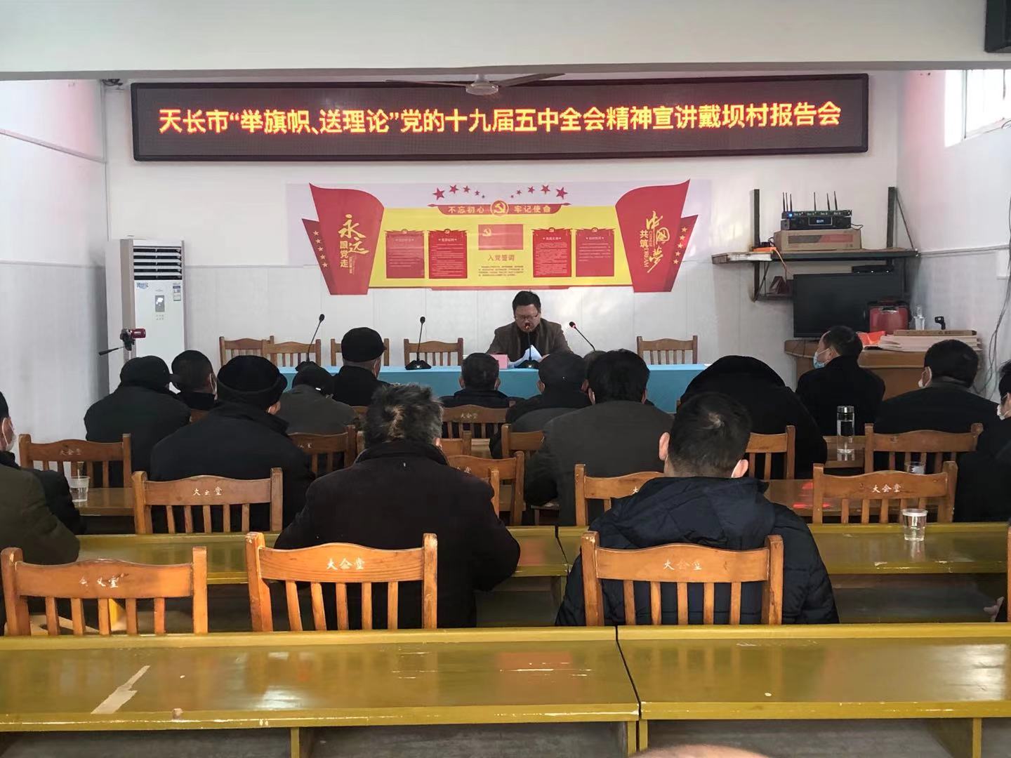 近日,天長市委宣講團走進戴壩村宣講黨的十九屆五中全會精神,全體黨員和部分村民代表參加了會議。