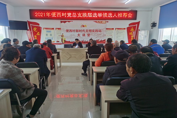 2021年10月18日,便西村黨總支召開換屆選舉候選人初步人選推薦會,黨員、村民代表參會參與推薦,實到黨員代表63名、村民代表46名,其中既是黨員代表又是村民代表的17名。