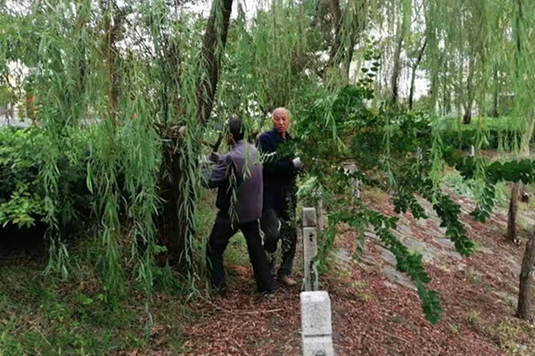 10月16日,銅北村修剪北園新村交通主干道邊上的大樹,清運殘枝落葉,消除安全隱患、為村民打造美麗、安全的環境景觀