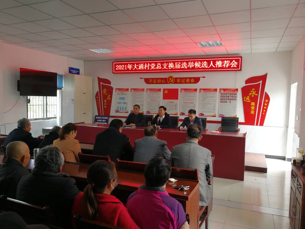 按照市委和鎮黨委的統一部署以及村黨組織換屆選舉工作的要求,2021年10月19日,大通村召開黨總支換屆選舉候選人推薦會,此次會議由大通村黨總支書記趙久松主持,鎮包村領導 周文龍 趙宏坤 出席了此次會議。