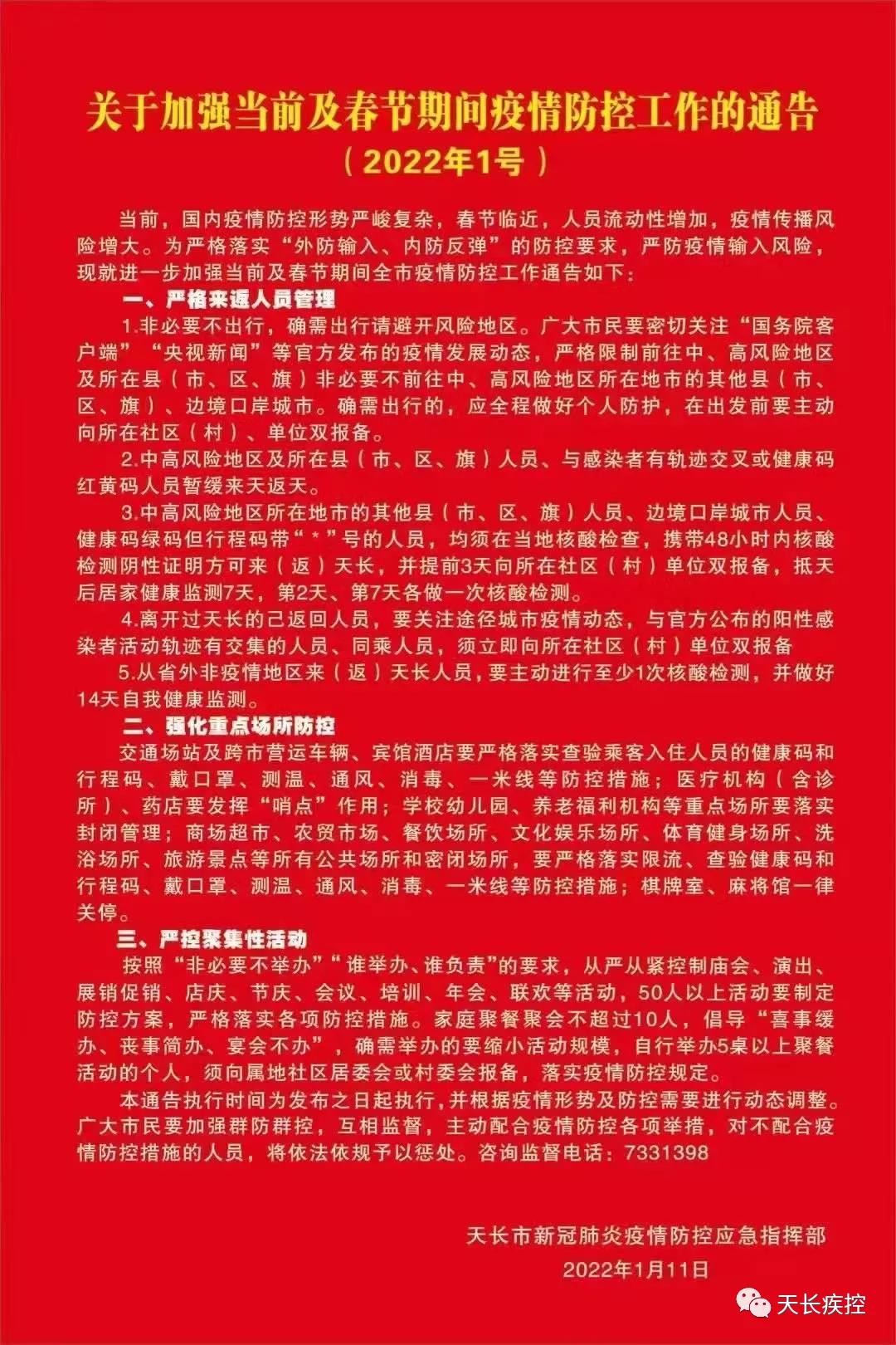 二、中、高風(fēng)險(xiǎn)地區(qū)及所在的縣(市、區(qū)、旗)人員嚴(yán)格限制出行。中、高風(fēng)險(xiǎn)地區(qū)所在地市的其他縣(市、區(qū)、旗)、邊境口岸城市,以及健康碼綠碼但行程碼帶“*”號的來(返)天長人員,均須持有48小時(shí)內(nèi)核酸檢測陰性證明才可來(返)。并第一時(shí)間主動向所在社區(qū)(村)、單位或入住賓館報(bào)告,配合做好核酸檢測、健康監(jiān)測等防疫措施。