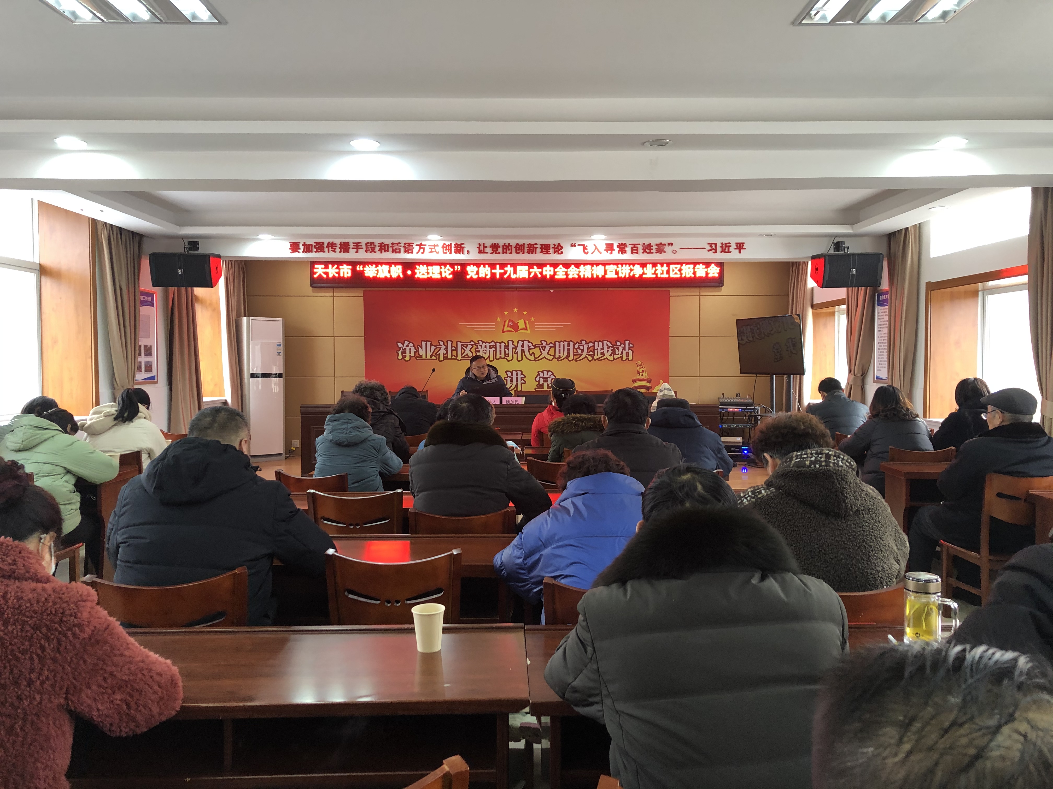 為了深入貫徹落實好黨的十九屆六中全會精神,1月6日,凈業(yè)社區(qū)在三樓會議室組織轄區(qū)黨員召開天長市“舉旗幟、送理論”黨的十九屆六中全會精神宣講報告會。在會中,中共黨員、滁州市委講師組成員、天長市優(yōu)秀宣講員、天長市第一小學教師魏加民向在座的各位黨員進行宣講。