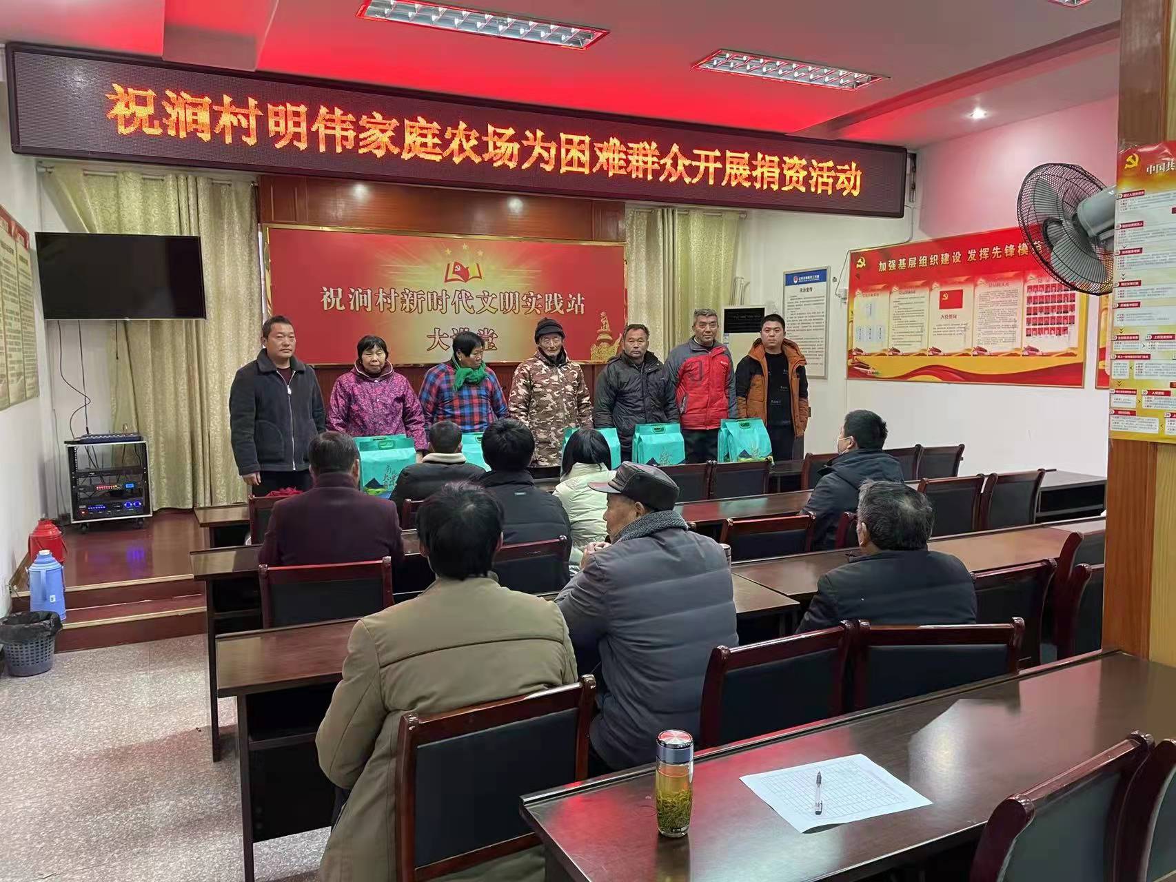 新年將至,為讓困難群眾真切感受到祝澗村村委會的關懷和溫暖,讓他們度過一個溫暖、安全的冬天,祝澗村聯合明偉農場為貧困群眾送上慰問。