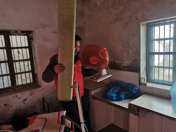 在打掃中,志愿者們拿著拖把、掃帚、抹布等工具,一絲不茍地幫助老人們整理房間。在一陣忙碌之后,原本有些臟亂的屋子被打掃的一塵不染,老人對社區工作人員豎起了大拇指并且連連稱贊,表示身為該轄區居民感到特別幸福。