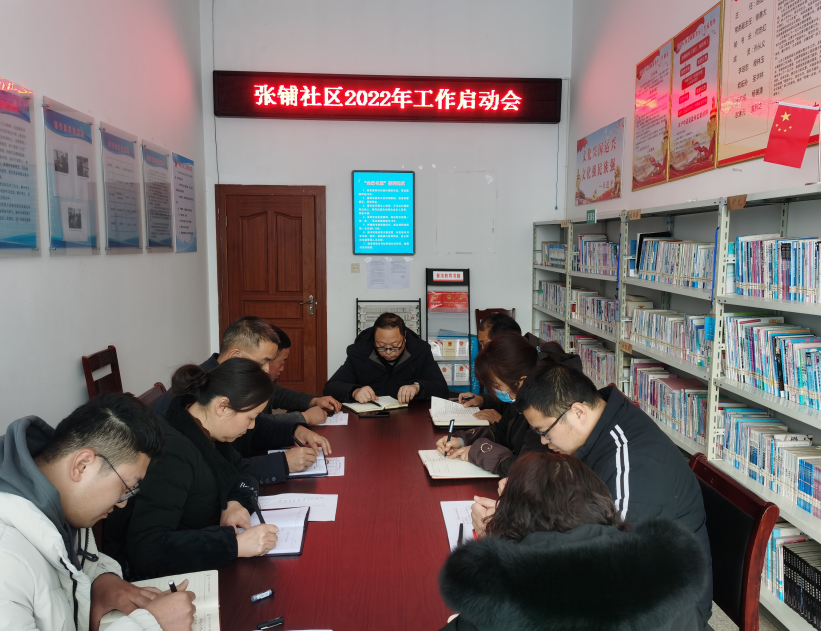 2022年2月8日,春節正月初八,根據鎮黨委書記工作會的工作精神指示,張鋪社區召開2022年工作啟動會,全體社區干部參加會議。