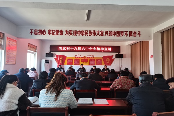 為強化黨員干部政治理論學習,尚武村始終堅持將學習貫徹黨的十九屆六中全會精神作為當前和今后一個時期重要的政治任務,常態化開展學習宣講活動。2月25日下午,尚武村開展十九屆六中全會精神宣講會,組織全體黨員干部共同學習貫徹黨的十九屆六中全會精神。