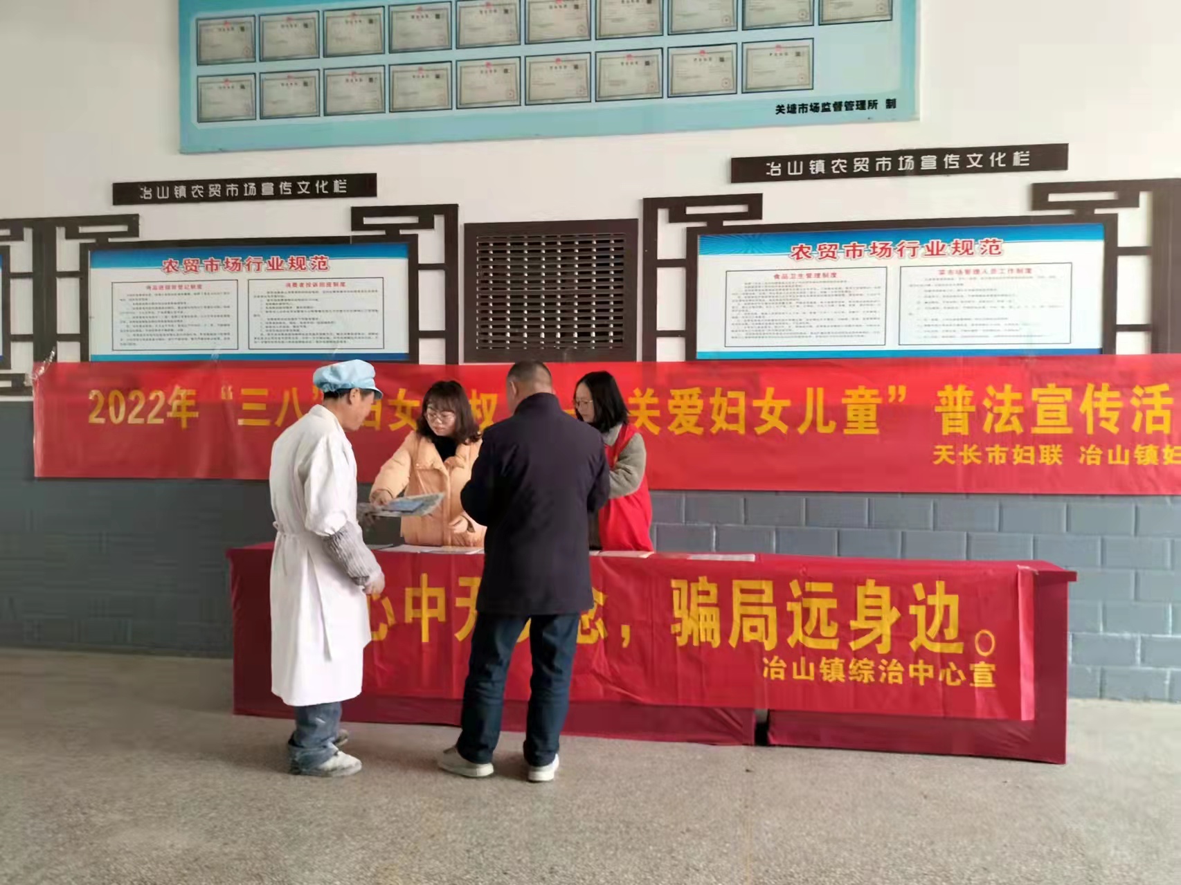 3月3日是農歷的二月初一,十里八鄉的村民都會來到關塘集鎮趕集,這天上午冶山鎮婦聯在關塘集鎮農貿市場開展“三八維權月”關愛婦女兒童普法宣傳活動。