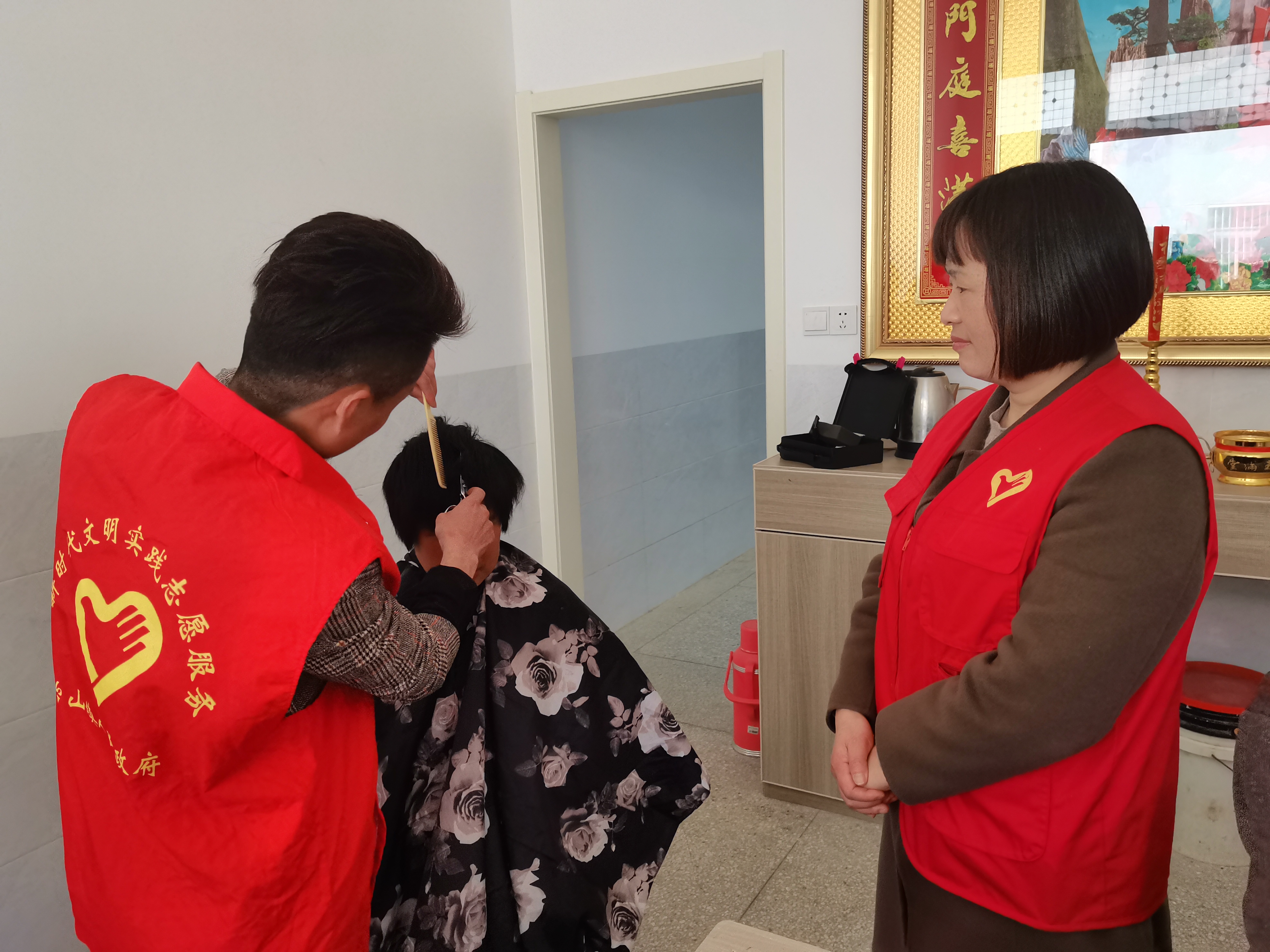 活動前,志愿者們了解到這幾戶困難家庭多存在老人長期臥床或殘疾人出行不便的情況,于是聯系了當地的愛心人士上門義務為他們理發,理發過程中,志愿者們親切的與家中的老人攀談,紓解他們長期臥床導致的煩悶。