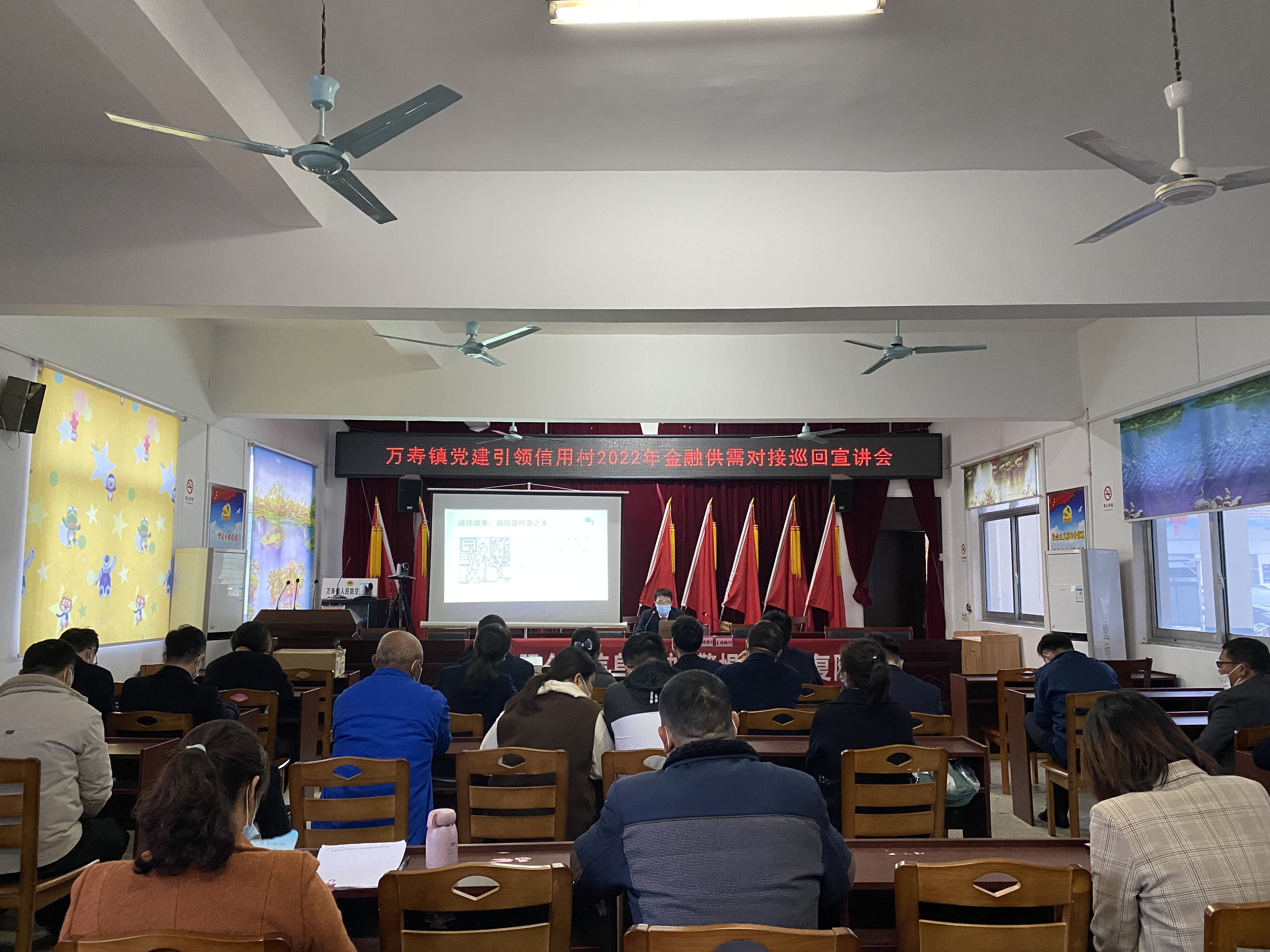 為進一步暢通萬壽鎮各信用主體融資渠道,擴大黨建引領信用村、金融知識、信貸產品的宣傳面,增加信貸投放力度,3月14日上午,萬壽鎮召開黨建引領信用村2022年金融供需對接巡回宣講會,邀請全市主要金融機構開展宣講,各村信用戶代表及新型經營主體負責人參加會議。