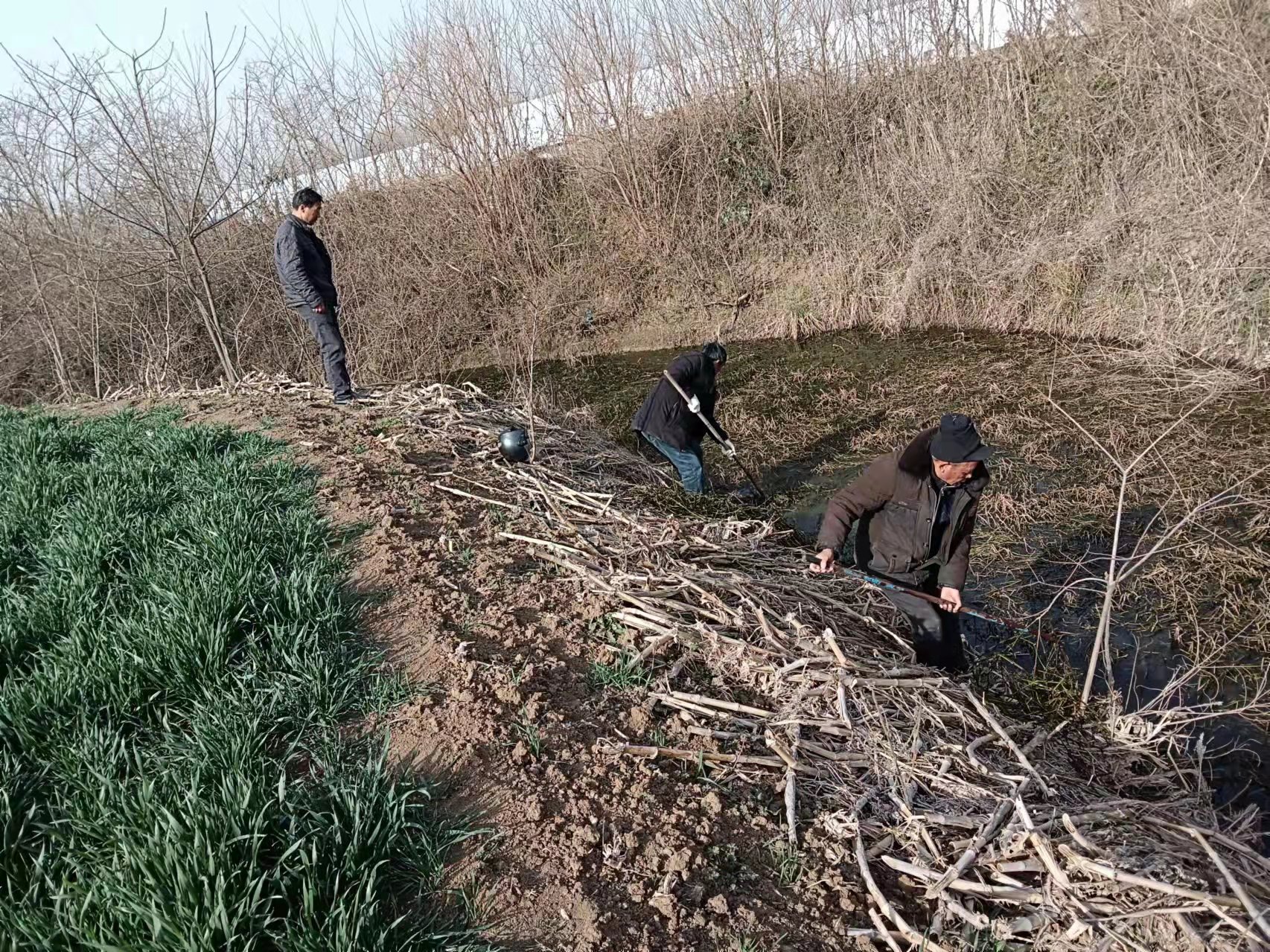 結合當前工作任務和下步農業生產需求,自3月起,我村計劃開展為期近一個月的水利工程綜合治理工作。圖片為三墩機站至六黃水庫主渠道進行雜草清淤。