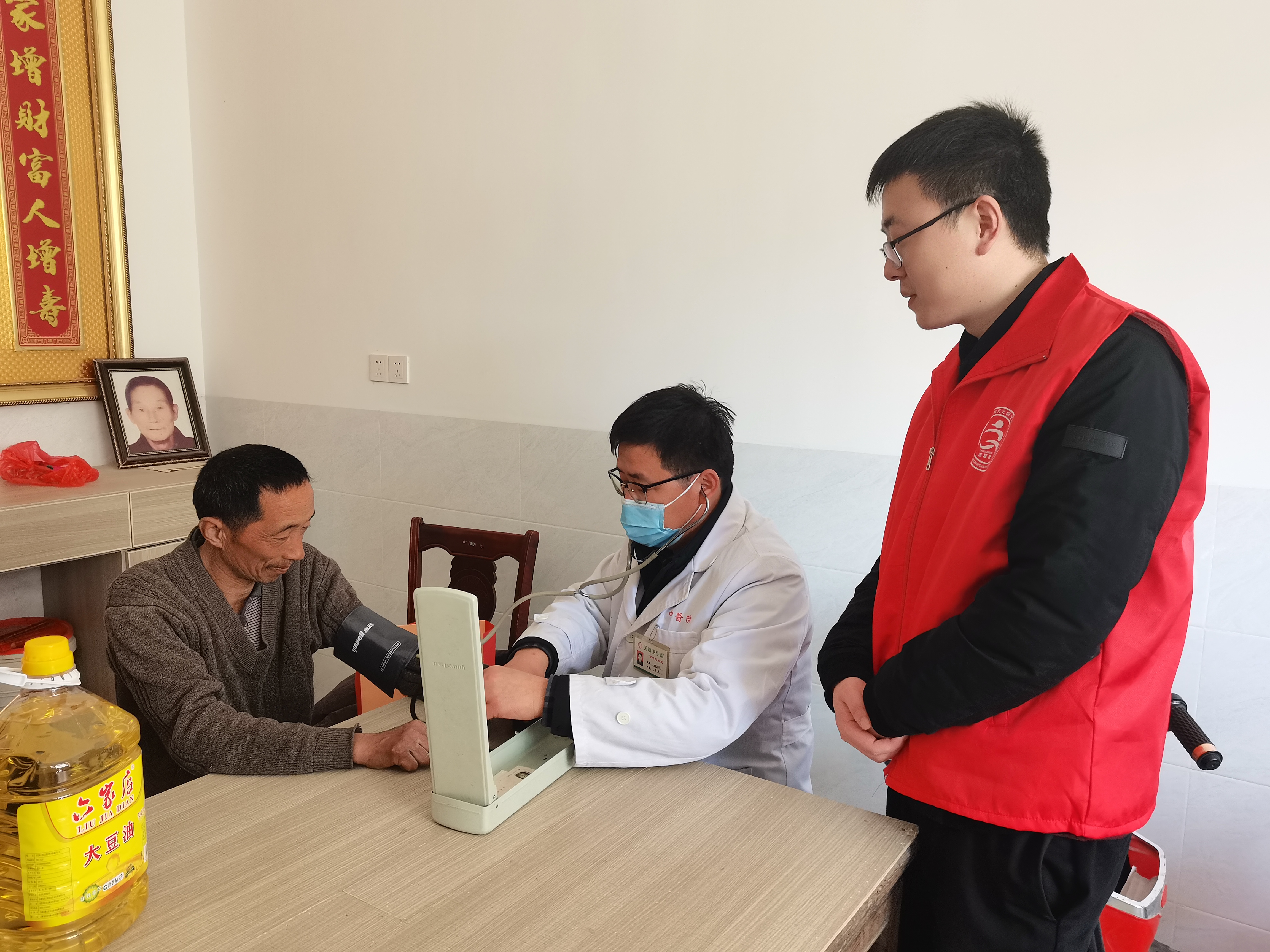 志愿活動從“鎮(zhèn)領(lǐng)導(dǎo)送溫暖”、“理發(fā)剃須”、“村醫(yī)上門測血壓”和“打掃衛(wèi)生”四個方面進(jìn)行。首先,鎮(zhèn)志愿者給脫困戶送上了米、油等;接著,理發(fā)師志愿者免費(fèi)幫助孫世華和陳偉進(jìn)行了理發(fā);同時,村醫(yī)幫助孫錦元、孫世華和王有松進(jìn)行了血壓測量,并對他們的飲食方面提出了合理化建議;最后,我村文明實(shí)踐站志愿者對脫困戶進(jìn)行了地面衛(wèi)生清潔。經(jīng)過一個半小時的志愿服務(wù),志愿者們收獲了來自脫困戶和周邊群眾的點(diǎn)贊和好評。