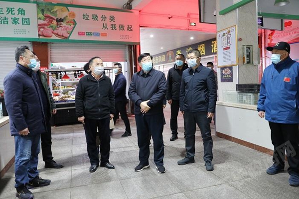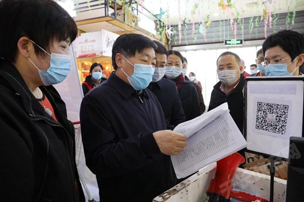 在天發廣場、南城河菜市場,賀家平詳細詢問了當前疫情防控措施,現場檢查了商場出入口人員登記、體溫檢測和行程碼、健康碼查驗,日常衛生消殺等工作落實情況。他強調,商場、菜市場人流密集,要進一步扛起主體責任,嚴格落實疫情防控各項要求,繃緊疫情防控這根弦,全面嚴起來、緊起來、實起來,對所有進出人員落實測量體溫、佩戴口罩、查驗安康碼、健康碼等防控措施,切實把各項防控措施落到實處。