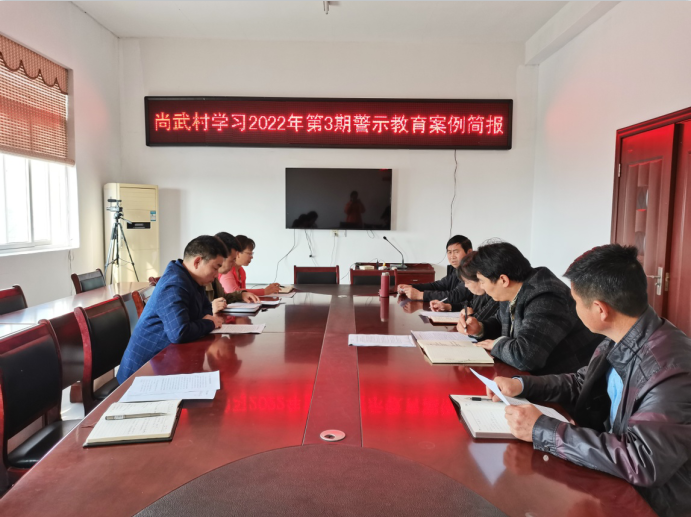 為進一步加強基層黨組織黨風廉政建設和作風紀律建設,提高黨員干部遵紀守法意識。3月16日上午,尚武村組織黨員干部在三樓會議室學習張紀警簡報2022年第三期。會議由周玉龍書記主持,全體村干部參加。