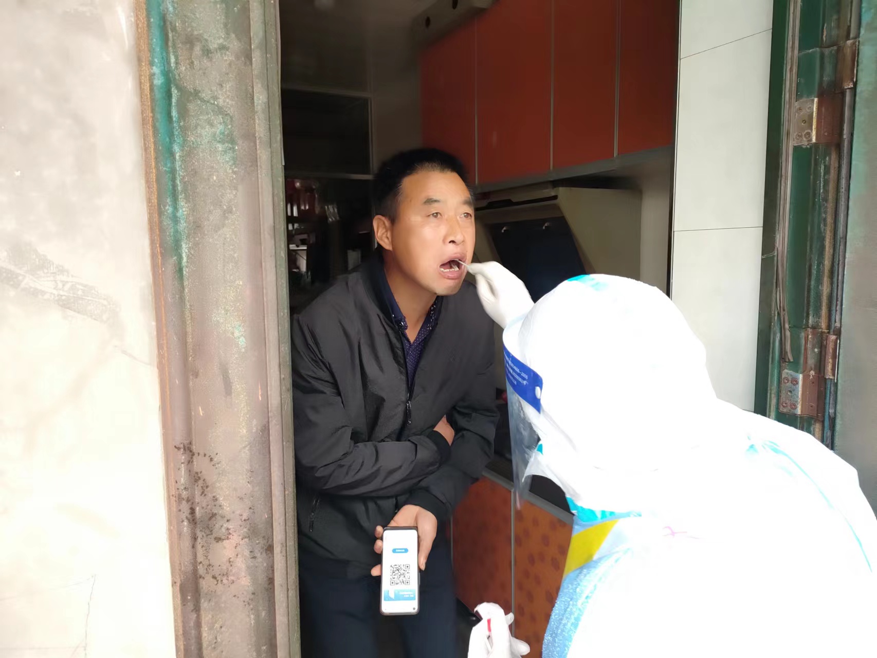 2022年04月25日,十八集社區工作人員協同村醫上門為從滁州返回天長,居家隔離的密接和次密接人員采集核酸,落實核酸檢測政策,并張貼通告,囑咐居家隔離及居家健康檢測相關事宜。