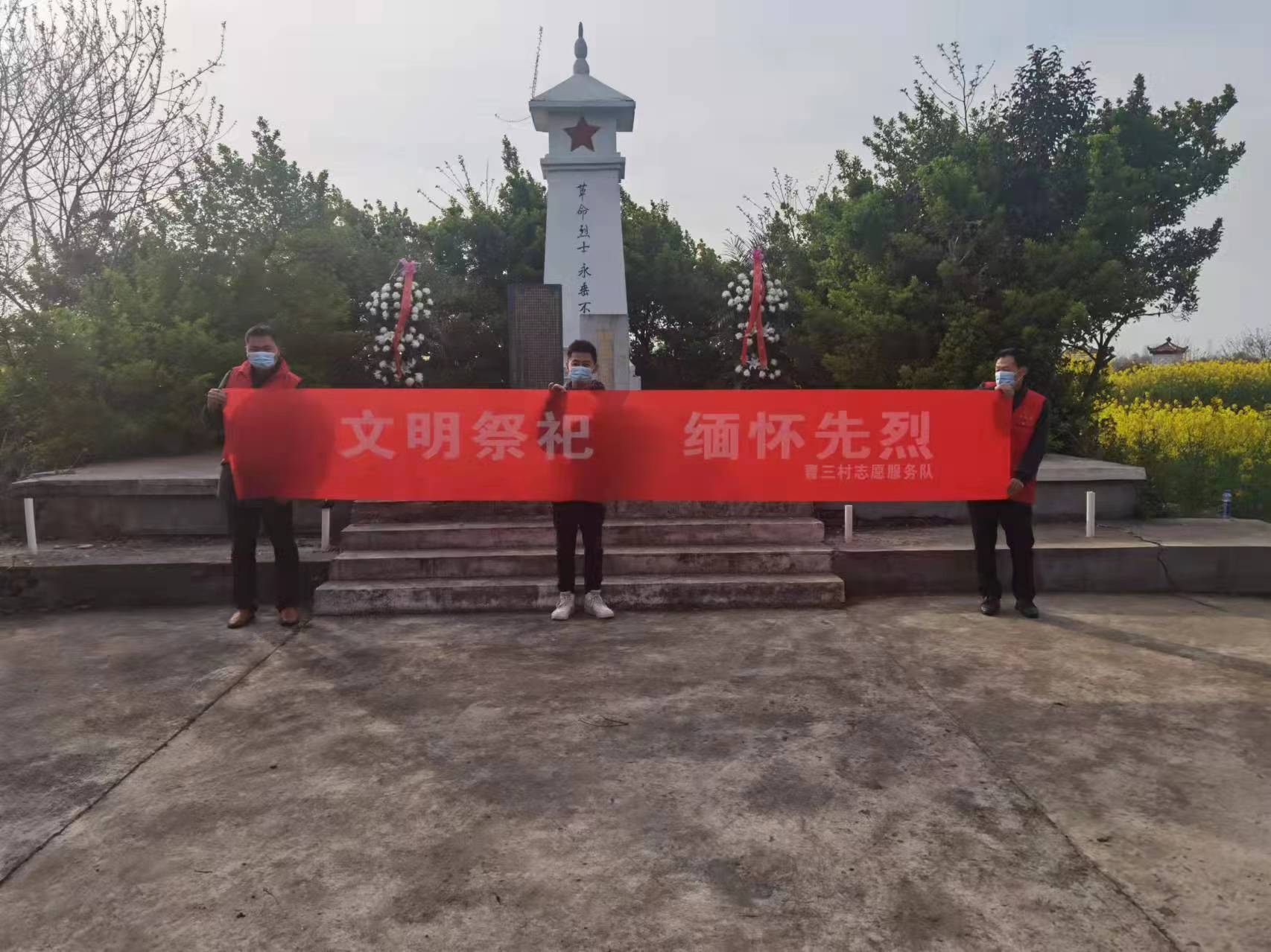 2022年4月5日,曹三村志愿者在陸書記的帶領下前去位于曹三村烈士陵園,進行樹枝清理,雜草清理,周邊環境整理。清明節是孝悌觀念的一種表達,青山埋忠骨,翠柏勉英雄,愿以寸心寄華夏,且將歲月贈山河。幸得有你們,山河已無恙,吾輩當自強。