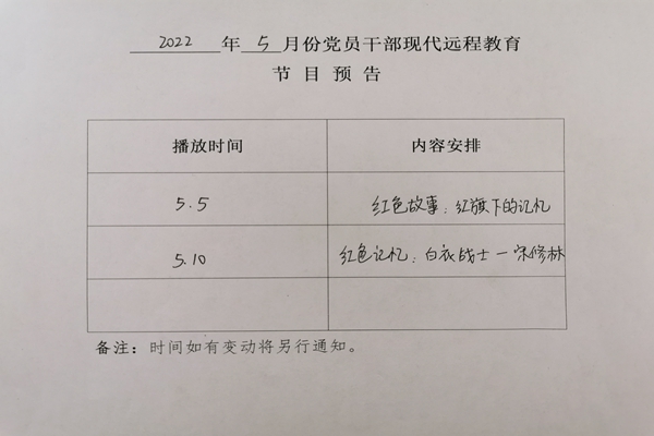 上一篇:吳莊村2022年4月份遠程教育播放計劃[ 04-01 ] 下一篇:吳莊村2022年6月份遠程教育播放計劃[ 06-01 ]
