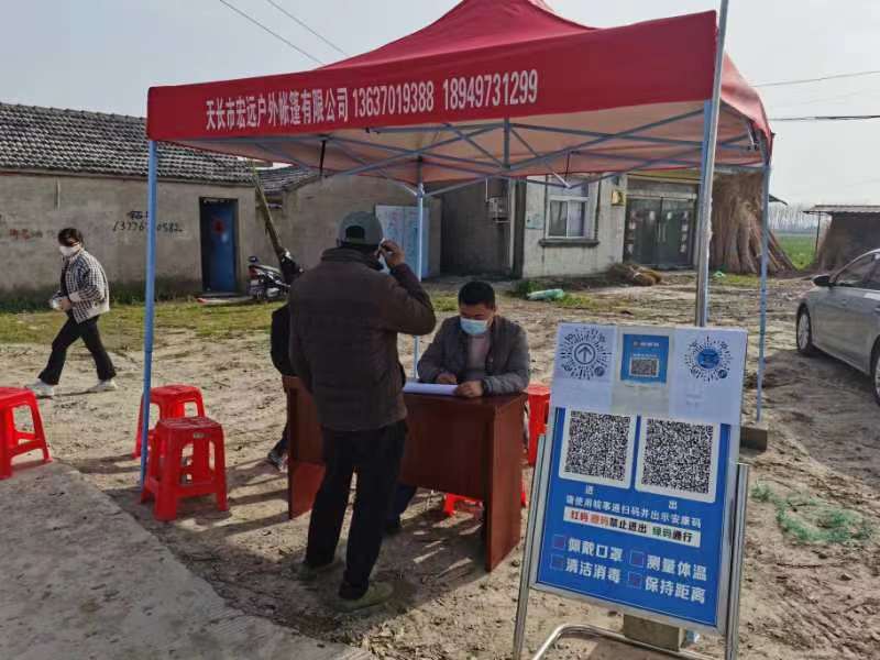 為落實疫情防控相關要求,3月27日,古庵村在主要路口設置卡口,檢查核實過往車輛及人員相關信息并進行掃碼測溫。