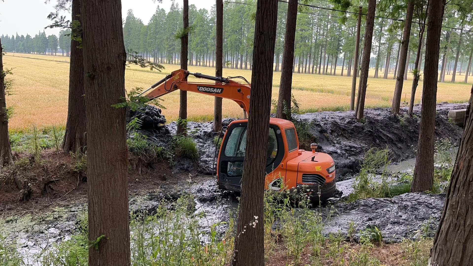 永豐鎮三元村水杉大道屬天長的網紅大道,每到夏季綠樹成蔭吸引不少游客前來打卡。由于落葉、殘枝、淤泥堆積造成溝渠堵塞嚴重,每年汛期周邊千畝農田受災嚴重,為使農田旱能灌、汛能排,三元村組織力量對溝渠進行 “地毯式”清淤,既保護了網紅大道美景,也成就了農民灌溉的方便。