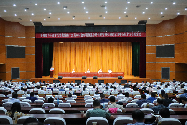 6月13日上午,全市領導干部學習貫徹黨的十九屆六中全會精神集中培訓班暨市委理論學習中心組學習會結業式在市委黨校舉行。市委副書記、市長杜永冰出席結業式并講話,他強調:要深入學習貫徹黨的十九屆六中全會精神,把學習成果體現在對黨忠誠、加快發展、為民造福、改進作風上,奮力創造出色、出彩、出眾的一流業績,以優異成績迎接黨的二十大勝利召開。市委副書記史法勇主持結業式,市委常委、組織部長王林出席結業式。