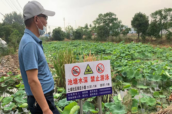 社區工作人員對轄區重點水域進行走訪,對周邊水塘的安全防護設施和防溺水警示牌等設置情況進行巡查,并對壞損的安全提示標牌進行及時更換,同時向附近居住的群眾發放宣傳單進行安全宣傳,確保居民及廣大父母時時刻刻敲響安全警鐘,防止溺水意外的發生。